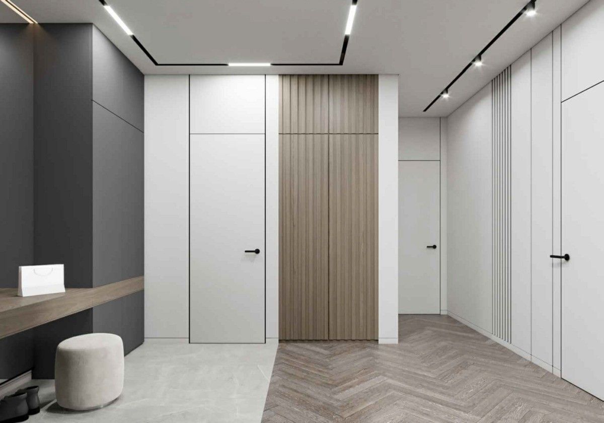 В качестве основного материала используем ЛДСП Egger. Мебельные фасады могут быть изготовлены по Вашему желанию из более разнообразного перечня: Крашенный МДФ, пластик, массив и шпон древесины, Каменный шпон, стекло.